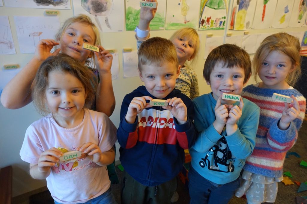 Myndirnar voru hengdar upp á vegg með kubbunum hjá, og innan skamms var kominn heill dýragarður. Í samverustundinni sungum við síðan lagið: "Ég fór í dýragarð í gær og gettu hvað ég sá". Þá gafst líka tækifæri fyrir börnin að segja vinum sínum frá því hvar dýrið þeirra hefði verið í felum þegar þau fundu það.