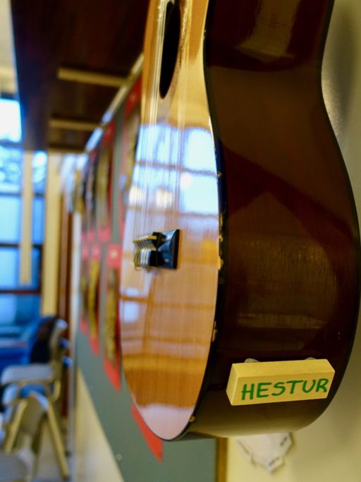 Myndirnar voru hengdar upp á vegg með kubbunum hjá, og innan skamms var kominn heill dýragarður. Í samverustundinni sungum við síðan lagið: "Ég fór í dýragarð í gær og gettu hvað ég sá". Þá gafst líka tækifæri fyrir börnin að segja vinum sínum frá því hvar dýrið þeirra hefði verið í felum þegar þau fundu það.