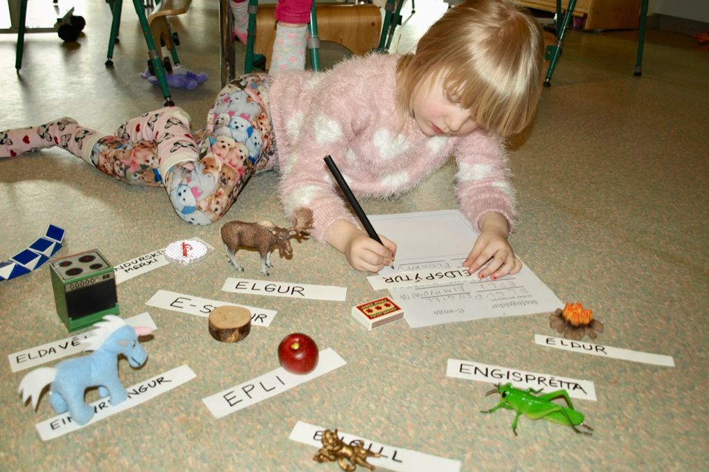 Skjölin hér að neðan eru með eyðum þar sem skrifa á inn nafn barnsins. Athugið að velja skjalið með réttu kyni og að skrifa nafnið inn í réttri beygingarmynd á hverjum stað.