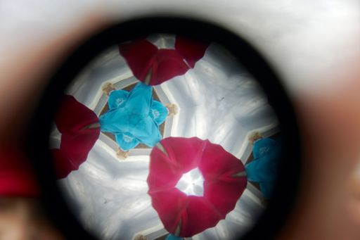 Við tókum með okkur kviksjá (kaleidoscope) í fjöruferð og skemmtum okkur við að sjá hvernig allt brotnar í mynstur þegar maður horfir á það í gegnum hana.