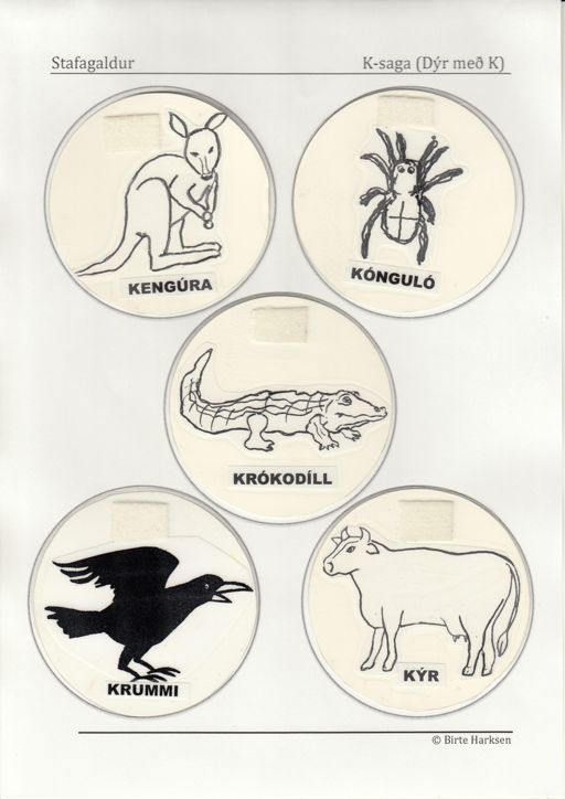 Í þessari sögu lærum við að til eru mörg dýr sem byrja á bókstafnum K. Í sögunni er líka lögð áhersla á að klappa atkvæði og við lærum litla vísu þar sem við æfum okkur í að klappa atkvæðin: