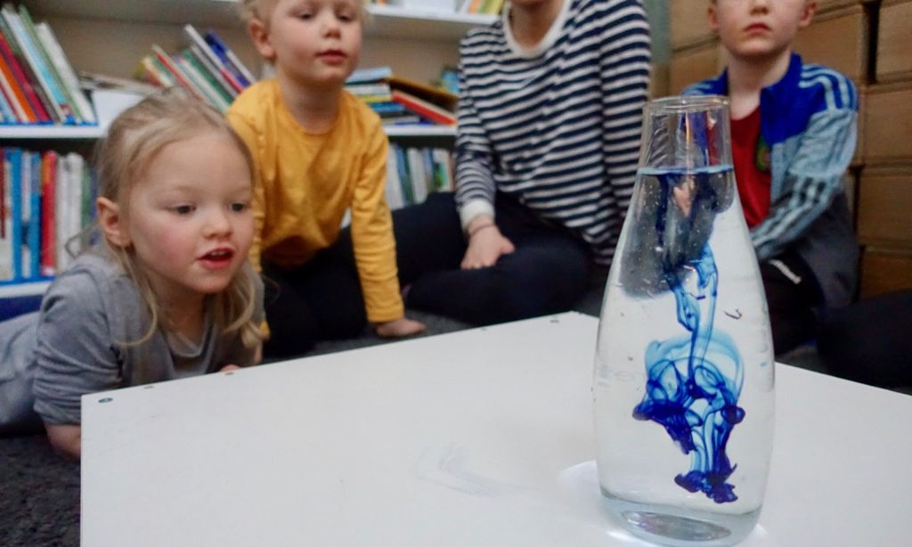 Þetta byrjar vel. Bara það að fylgjast með bláum litadropum dansa í vatninu er heillandi og fallegt