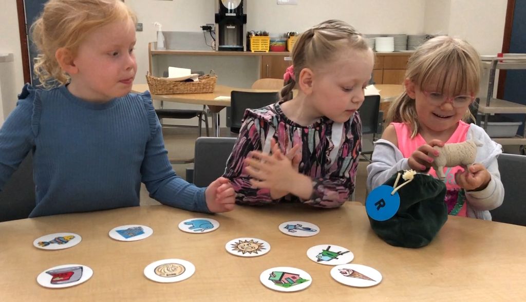 Í töfrapokanum eru 10 hlutir sem ríma við spjöldin á borðinu. Áður en leikurinn byrjar fara börnin yfir "orðin" á spjöldunum og reyna jafnvel að giska á hvaða rímorð þau passa við. Síðan skiptast þau á að draga upp hlut úr töfrapokanum og hjálpast að við að ríma.