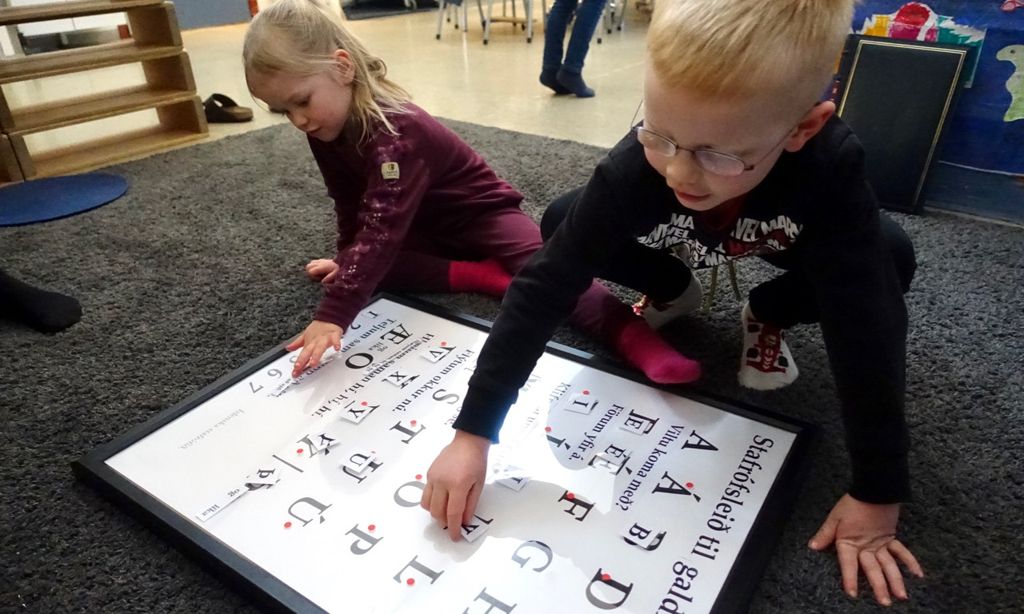 Þetta er stafrófsvísan sem ég samdi fyrir Stafagaldur. Gaman að segja frá því að ég var sjálf í fjallagöngu þegar ég fékk hugmyndina að henni. Með því að tengja heiti stafanna með setningum sem ríma og leiða okkur í átt að kastalanum verður það auðveldara fyrir börnin að þylja með. Leikurinn hjálpar börnunum síðan að læra að þekkja stafina enda tengist maður svolítið persónulega þeim stöfum sem maður finnur. Hér er pdf-skjal til útprentunar - gjarnan í A3.