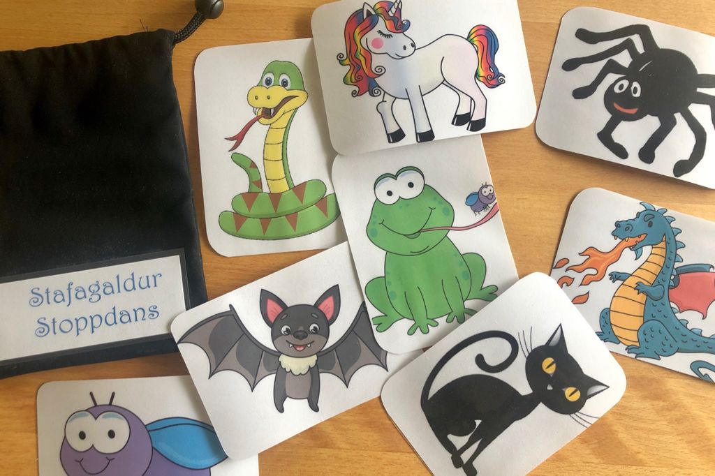 Hér eru PDF-skrár með myndunum sem ég nota í stoppdansinum: