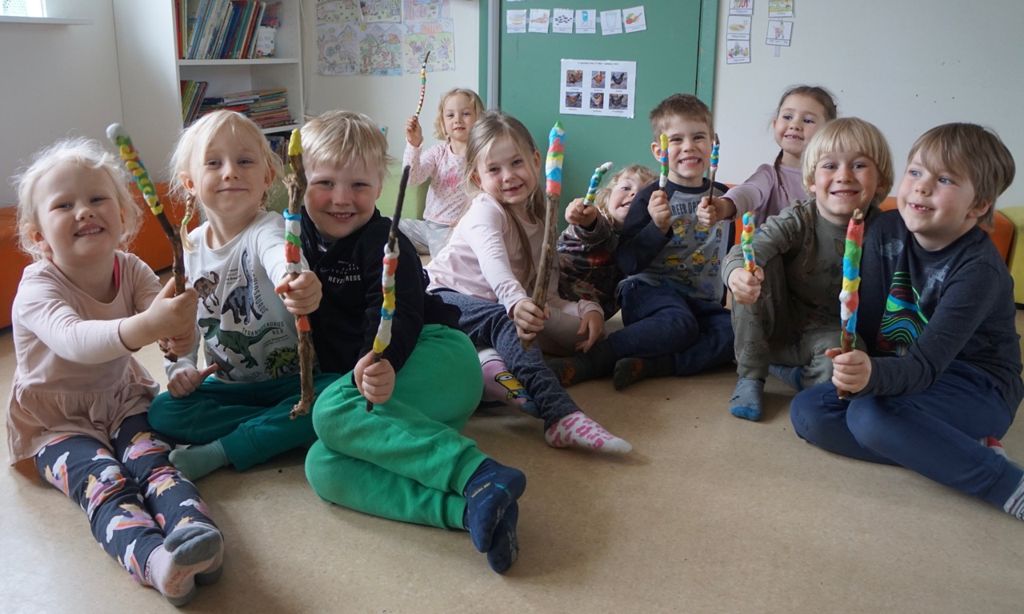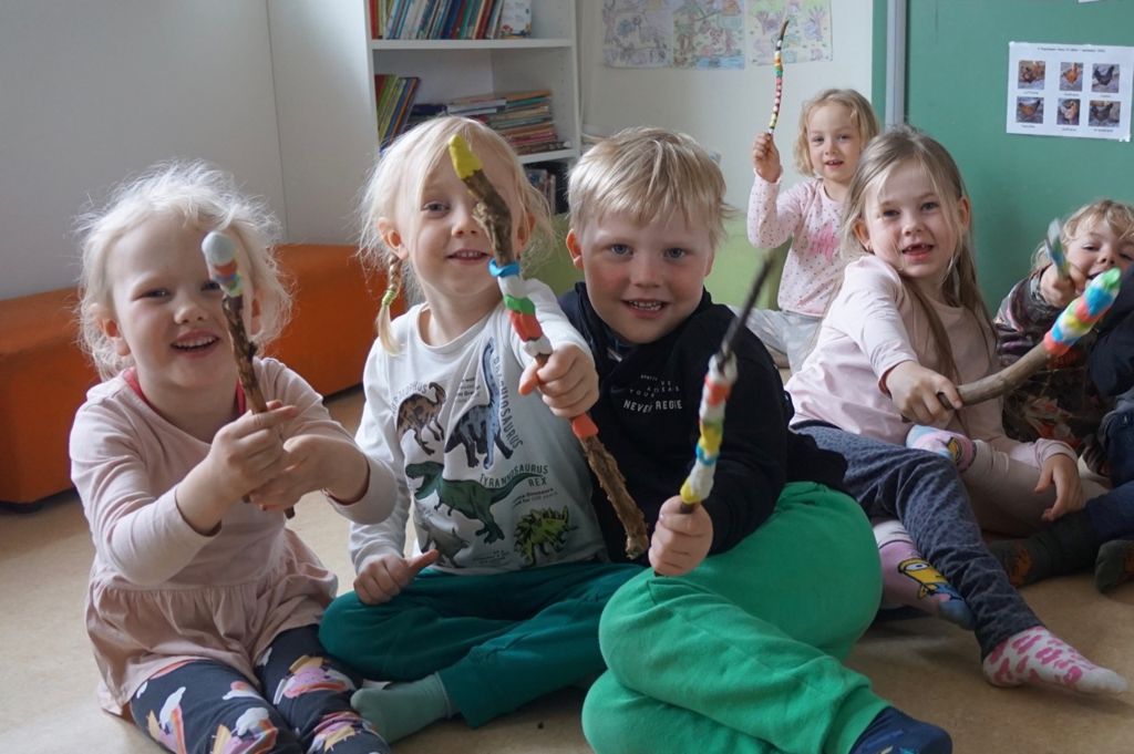 Börnin í Skólatröð gerðu fallega töfrasprota úr priki. Þau skreyttu prikin sín með Thermo leir sem er hægt að baka 130° heitum ofni til að leirinn harðni. Til at gefa þeim vísbendingu um hvað þau væru að fara að gera, sendum við þau fyrst út til að finna stafi sem við höfðum falið á leikvellinum. Þau fundu alla 11 stafina og gátu búið til vísbendingarorðið með því að leggja þá alla í rétta röð.